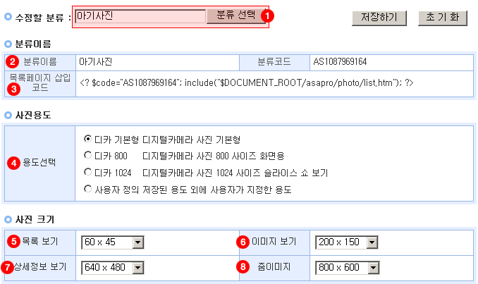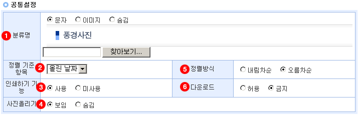 HOME > 호스팅 > 아사프로 > 사진관리 관리자 페이지 > 환경설정