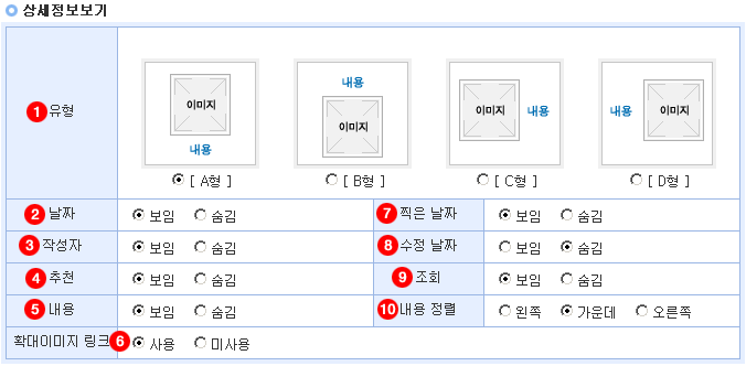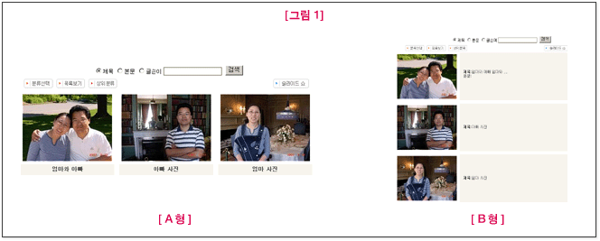 1. 유형 : 이미지 보기의 유형을 선택합니다. 아래 [그림 1]을 보시면 A형과 B형의 유형을 확인할 수 있습니다.