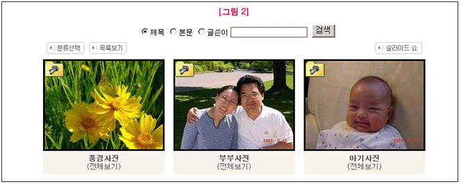 사진목록  사진추가  분류관리  환경설정  디자인설정