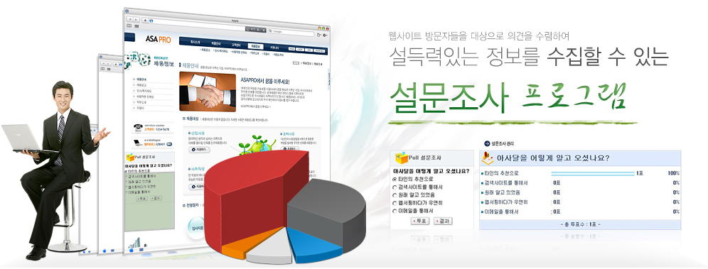 설문항목을 만들 수 있고 설문조사에 대한 기타환경설정이 가능합니다.