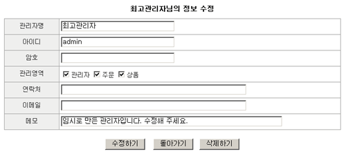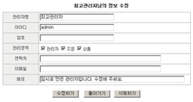 - 로그인한 관리자의 정보를 수정합니다. 관리자의 권한에 따라 위와 같이 보이는 정보가 다릅니다.