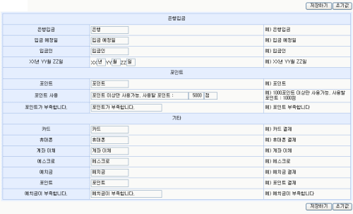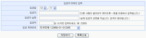 - 입금액: 입금액을 입력합니다. 오직, 숫자면 사용합니다.