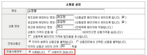 - 쇼핑몰에 나타날 댓글의 형식과 색상 등을 설정합니다.