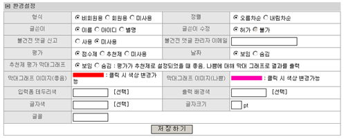 - (4) 글쓴이 수정 : 회원제와 연동할 경우 글쓴이 이름의 수정 가능 여부를 설정합니다.