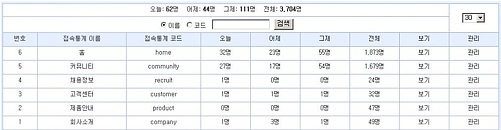접속통계 프로그램에 공통적으로 사용하는 문구를 관리합니다. 접속통계 분류 별로 문구관리를 할 수 있습니다.