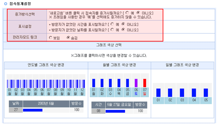카운터를 클릭했을 때 이동하는 경로를 접속통계, 관리자모드 등 원하는 곳으로 설정할 수 있습니다.