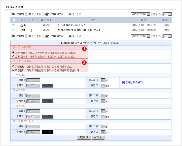 글꼴과 글자색 그리고 줄간격 등을 관리자가 직접 관리 여부를 결정합니다.