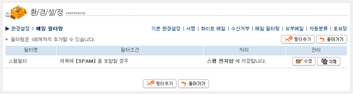 • 개인적으로 차단할 필요가 있는 스팸 메일에 대한 추가, 삭제가 가능합니다.